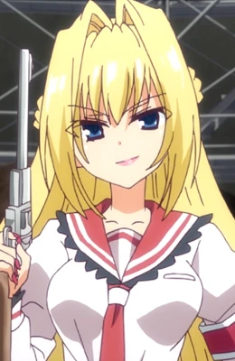 Urara Takachiho is a character from Aria the Scarlet Ammo. She is a lesbian because she later fell in love with Akari after having a brief rivalry with her and now fights for her affection alongside Shino. She is willing to do many things for Akari and has perverted fantasies of dominating her.